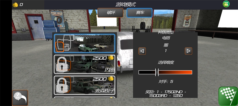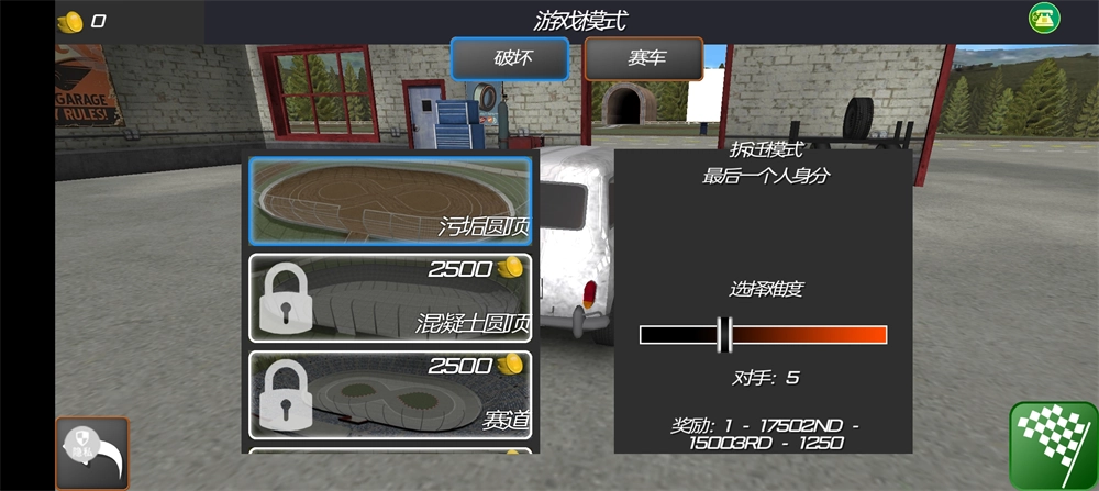 挑选好游戏模式,比如“破坏”或者“赛车”,再确定难度和地点。