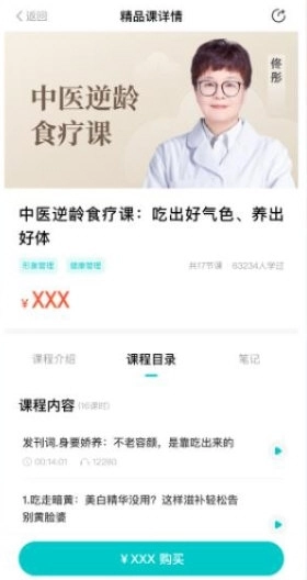 打开应用就能够在课程中心选择类目,找到课程内容;