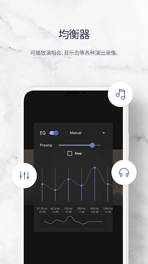 为了实现更具现场感的播放效果,我们提供均衡器(Equalizer)功能支持。