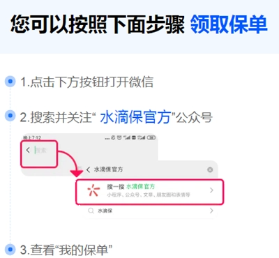 关注“水滴保”公众号,点底部菜单“我的保单”