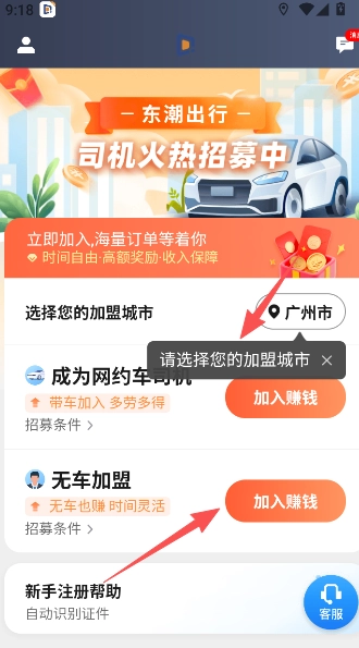 点击加入方式,选择成为网约车司机或是无车加盟。