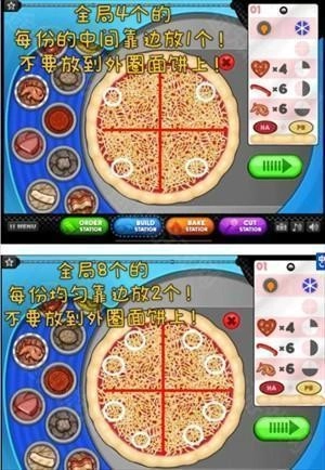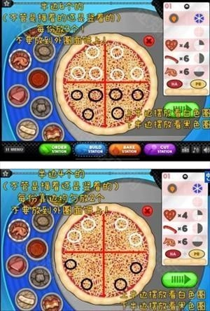酱料和芝士都得等虚线到最大处、靠近外圈的时候,再放到披萨饼上!不然会被扣分的哦!