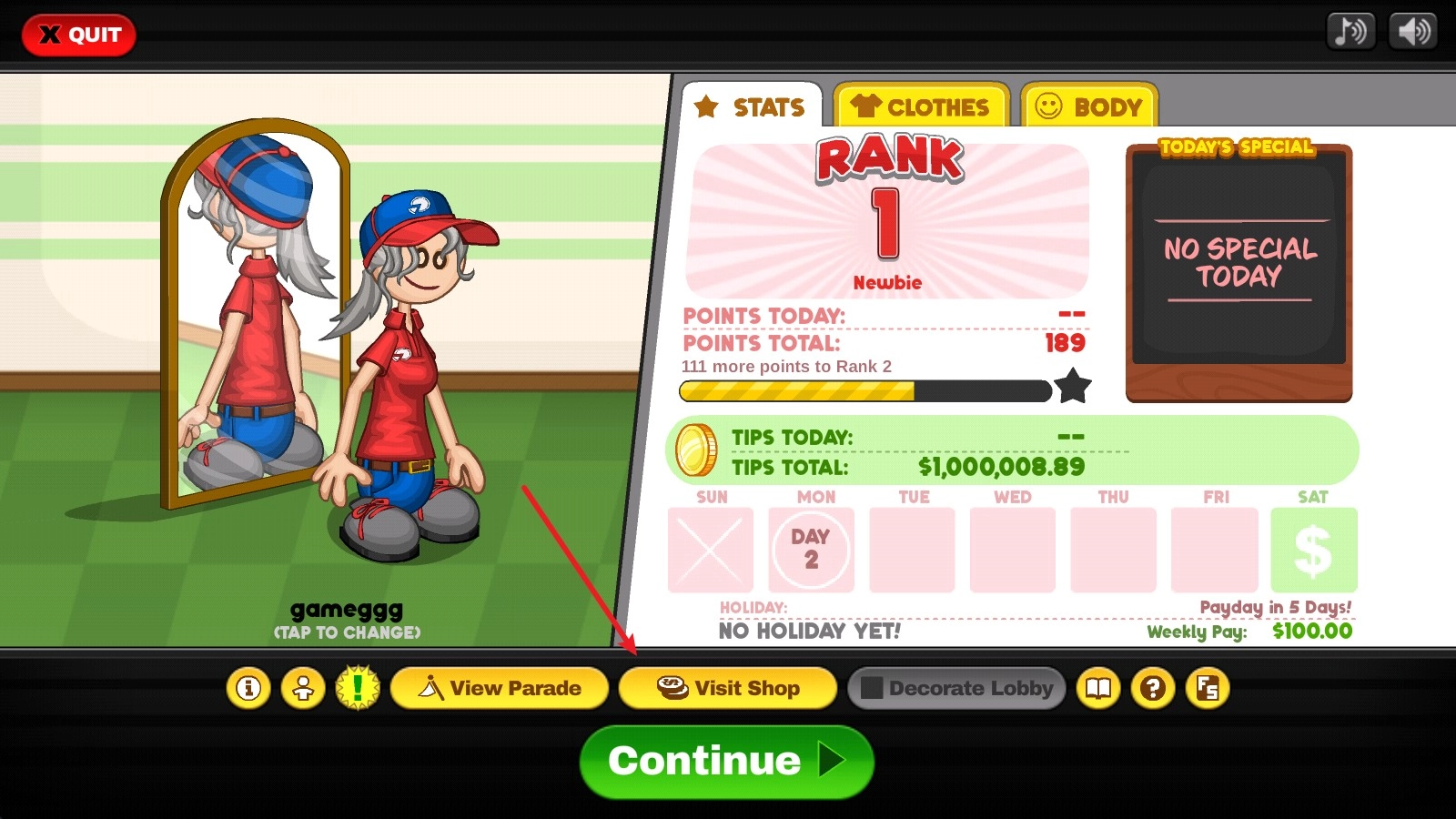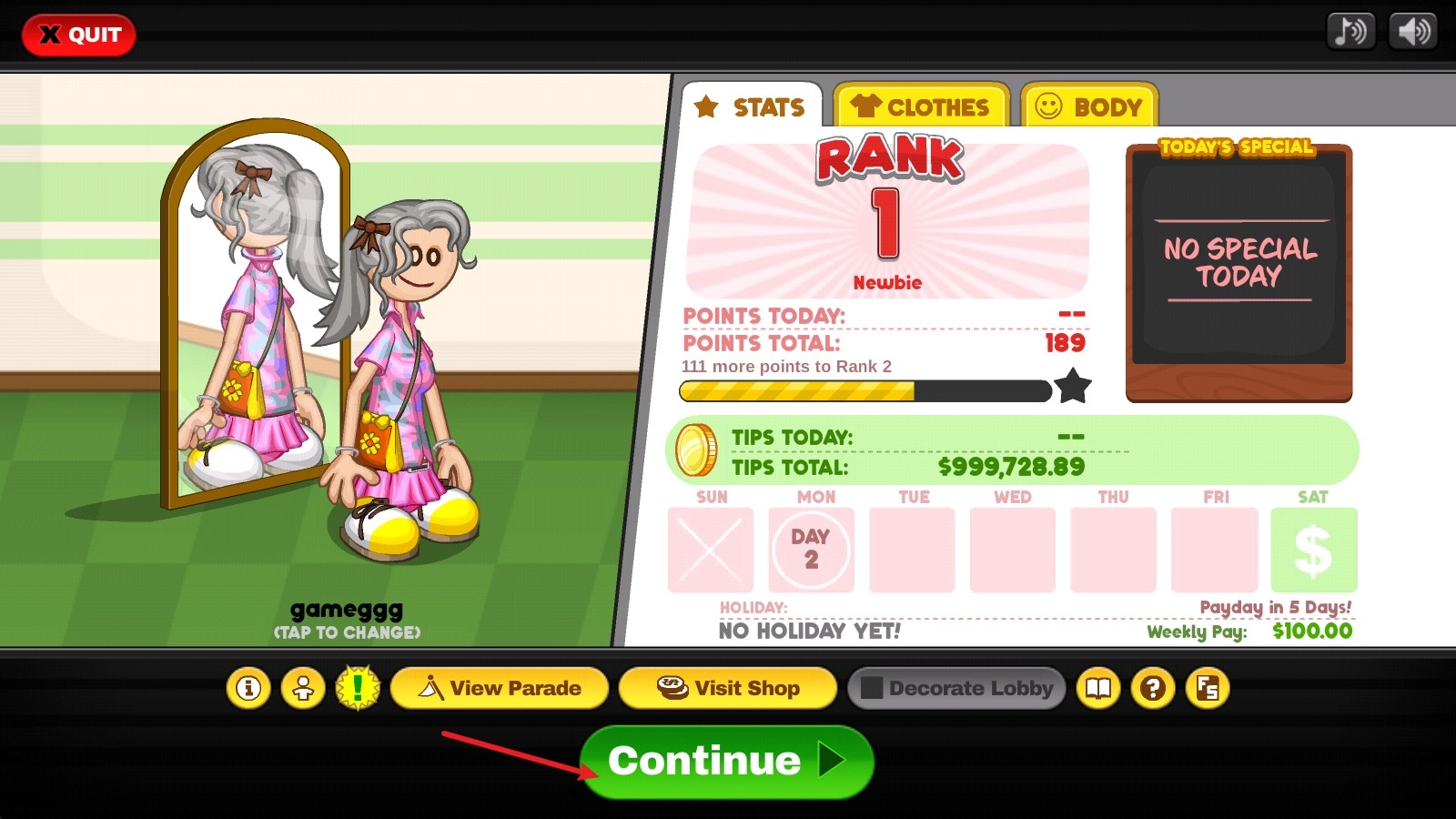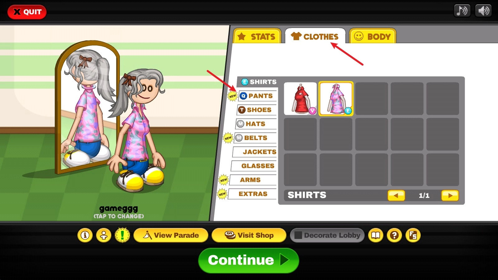 打扮完毕后,点击下方的CONTINUE按钮就能继续游戏了。