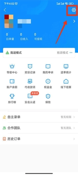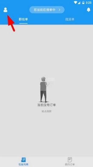 首先骑手们要点击快跑者配送端左上角的小人图标,进入个人中心页面。
