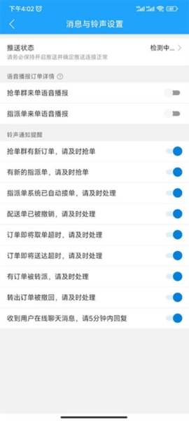 你可以对语音播报订单和铃声通知提醒进行设置,这样能更顺利地抢单和处理订单。