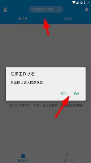 打开快跑者配送端软件后,需点击界面顶部的状态栏,将状态设置为【接单模式】,否则骑手可能无法抢到订单。