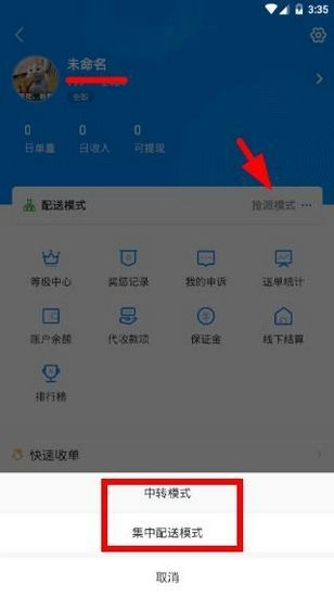 骑手可在个人中心设置配送模式,快跑者平台当前提供抢单模式、中转模式与集中配送模式三种选项。不同模式各有特色,对应的骑手数量也存在差异。骑手们若选择人数较少的模式参与抢单,竞争压力会相对降低,从而更有机会成功接单。
