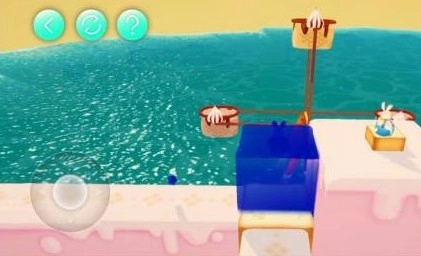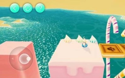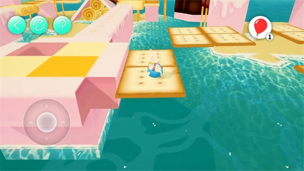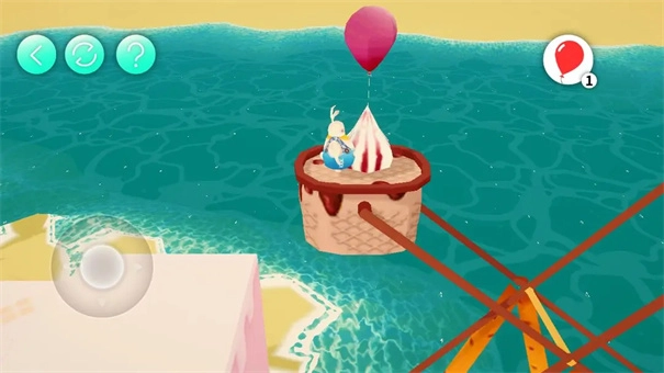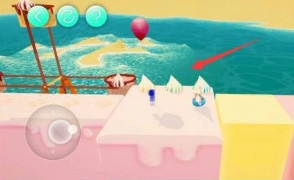 这里把气球分别放置在黄色、绿色、蓝色的冰激凌上,前方就会浮起对应的方块,借助这个就能通过此处。