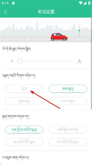 在考试设置页面点击汉文选项,即可完成考试语言的切换操作。