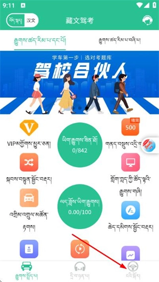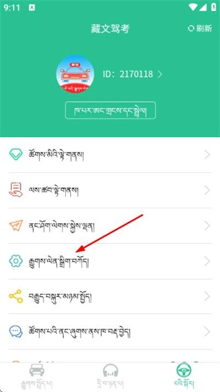 在藏文版驾考应用的首页,点击页面底部的“我的”选项,即可进入个人中心页面。