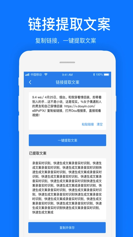 操作便捷性高:界面设计简洁直观,操作步骤简单易懂。用户仅需复制链接或上传文件,就能一键提取所需文案,无需进行复杂的设置操作。