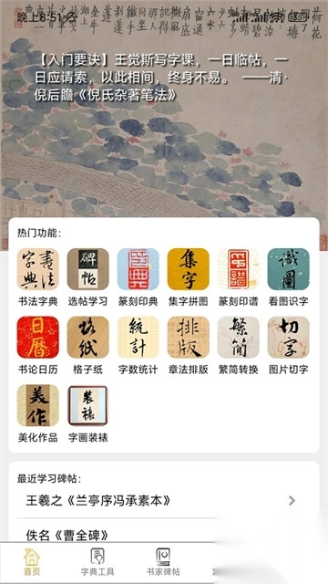 这是一款覆盖多维度的学习工具,能够助力用户高效增进书法文化修养。