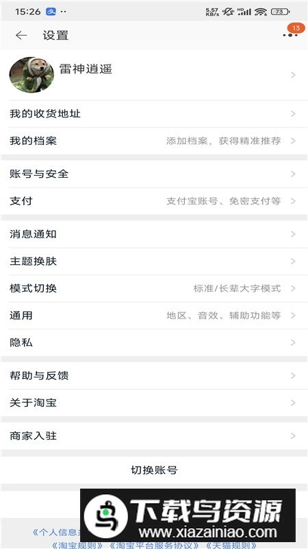 在首页上方点击【我的淘宝】,进入个人中心界面。