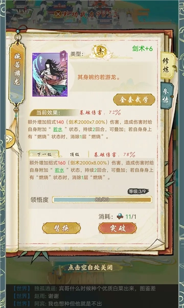 我们已拥有但是未使用的外功进行升级也是会增加剑术