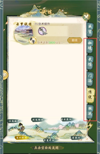 经验获取途径:除了主线和支线任务提供的经验外,还有三个渠道可以获取额外经验,分别是秘境、武馆挑战和门派试炼。