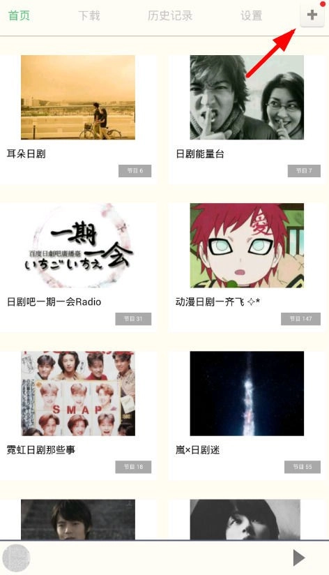 打开日剧tv后,我们既可以选择当前推送的热门日剧广播,也可以点击右上角的“+”按钮进入发现页面查找更多资源。