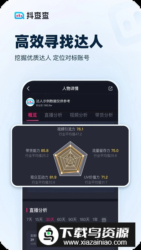 可以查询近期热度飙升的视频和热门电商产品,还能关注涨粉快的达人,完成数据的实时监测与分析。
