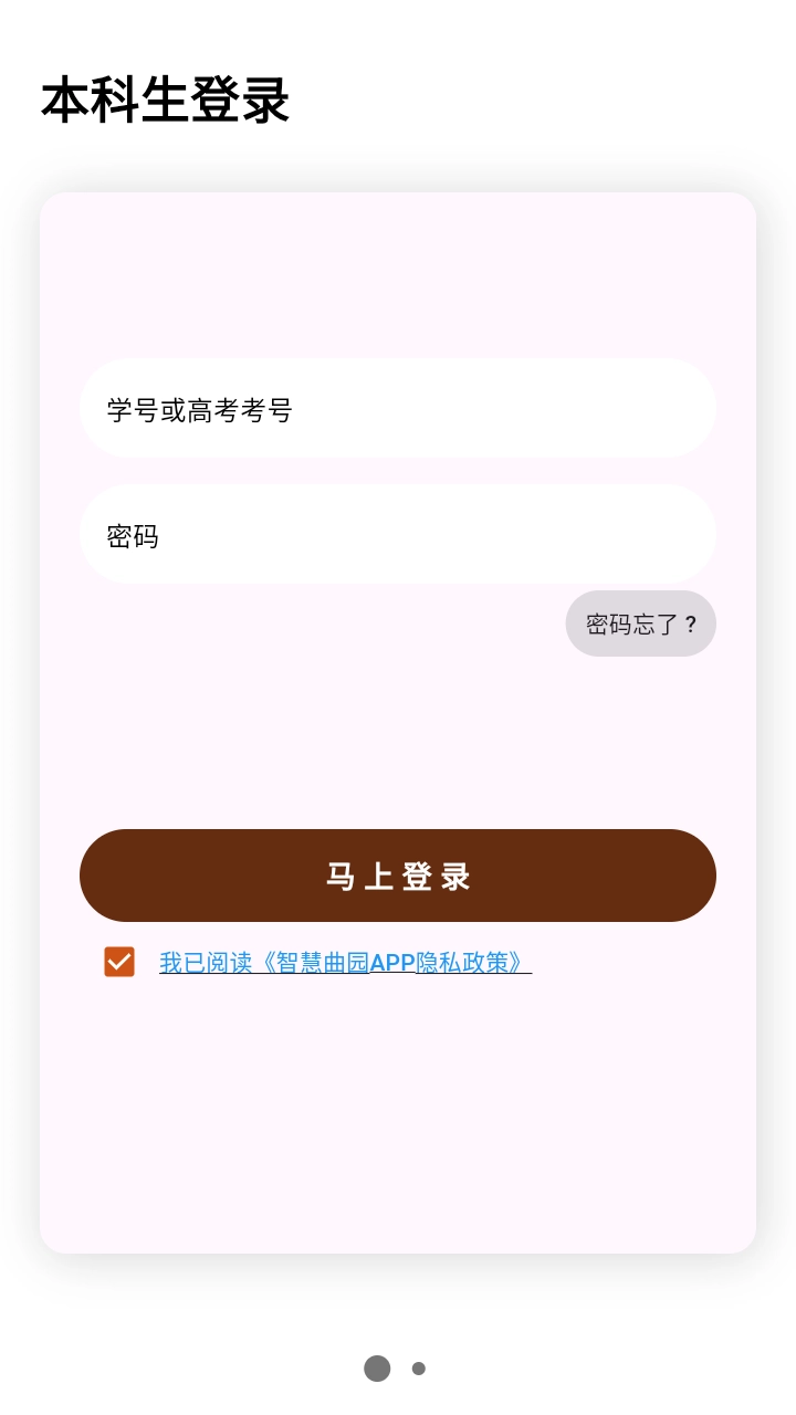 2、第一次使用,需要通过学好或高考考号以及密码登录之后使用。