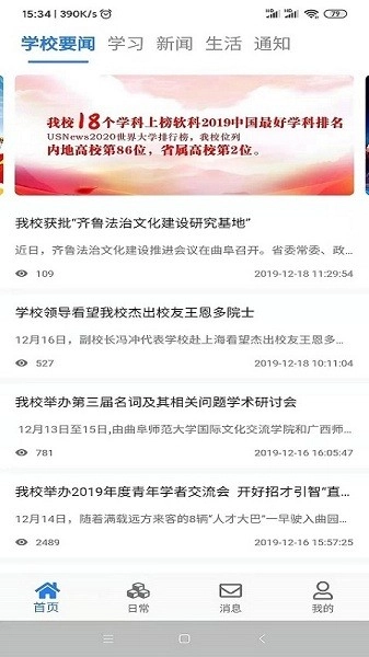 4、以“学校要闻”板块为例,可以随时进行浏览阅读。