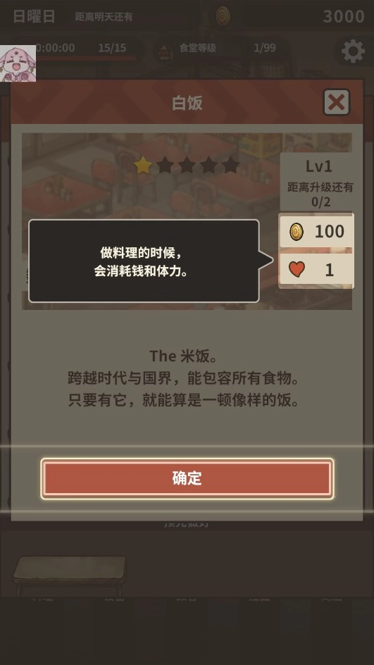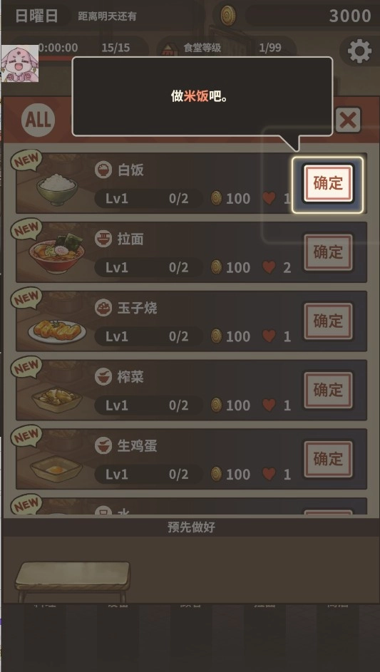 5、首先我们需要制作白米饭,点击白饭后面的确定