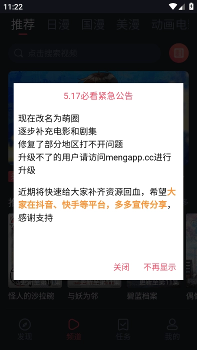 打开软件,映入眼帘的公告显示它已经改名为萌圈,并且完成了内容更新。