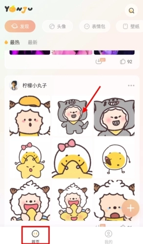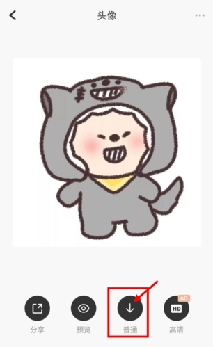 2、进去后可以看到该图片放大的样子,壁纸等都是同理,然后选择下方的框选起来的箭头,这就是言橘的保存键,它会自动将图片保存至手机相册中。