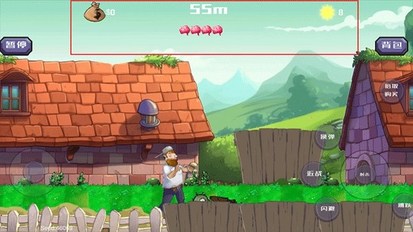 3、游戏上方会显示所拥有的金钱数量,生命次数,太阳能量值以及行程距离。太阳能量值是通过击倒丧尸来获取的。