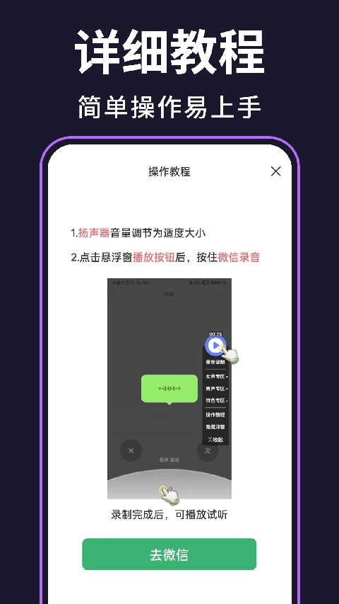 即时变声器是一款非常实用的手机应用,若你有改变声音的需求,不妨尝试一下它。这款软件功能丰富,能让你和他人的聊天更添趣味性——你既能通过传统语音方式实现变声,也可以借助文字转语音功能让文字变得生动有趣。此外,它还支持悬浮窗功能,可将变声效果应用到聊天、游戏等场景中,满足不同场景的使用需求,快来体验这款软件吧!