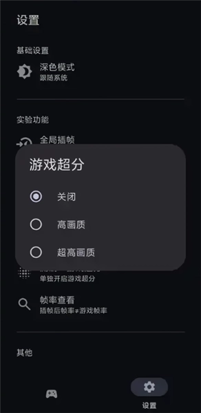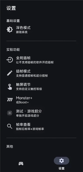 2、导入游戏后选择合适的功能,比如说:全局插帧、插帧模式、触屏调节、Monster+、测试游戏超分、帧率查看等