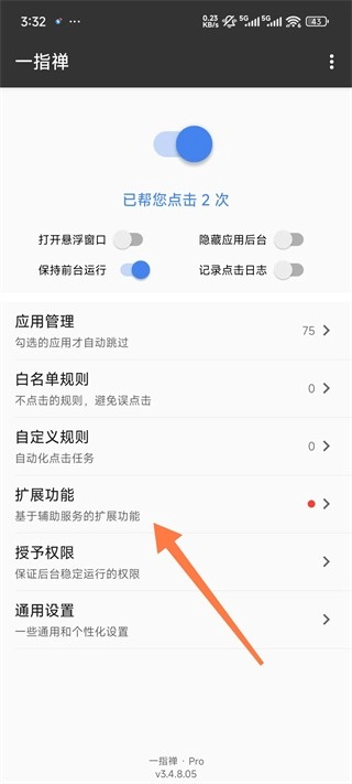 3、需要跳过广告的软件选中后,退回上一步点击进入【扩展功能】