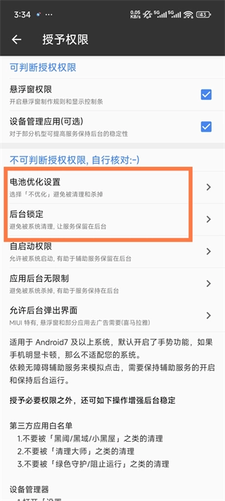 绿色守护/阻止运行/黑阈/小黑屋/清理大师等禁止后台的应用,需要将「一指禅」加入白名单