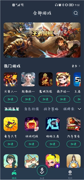 4、【大众一键加速】 一键加速支持上千款热门!为玩家提供稳定的游戏网络环境,玩大量的手机游戏。