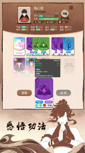 功法选择蜀山剑法,属性侧重魅力与炼丹。魅力能提升获取带优质词条伙伴的概率,炼丹则可产出高品质突破丹。功法挑选时无需关注属性百分比,重点看词条,核心技能为大恢复术、恢复术与雨润万物;若未能凑齐恢复术和水属性剑,可用枯木逢春保底。恢复术搭配水属性剑,通过打怪吸血来积累经验。