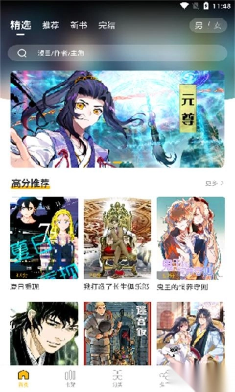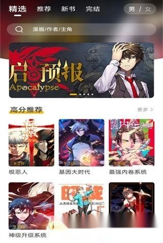 点击软件并进入后,我们就能在首页直接看到系统推荐的精彩漫画。