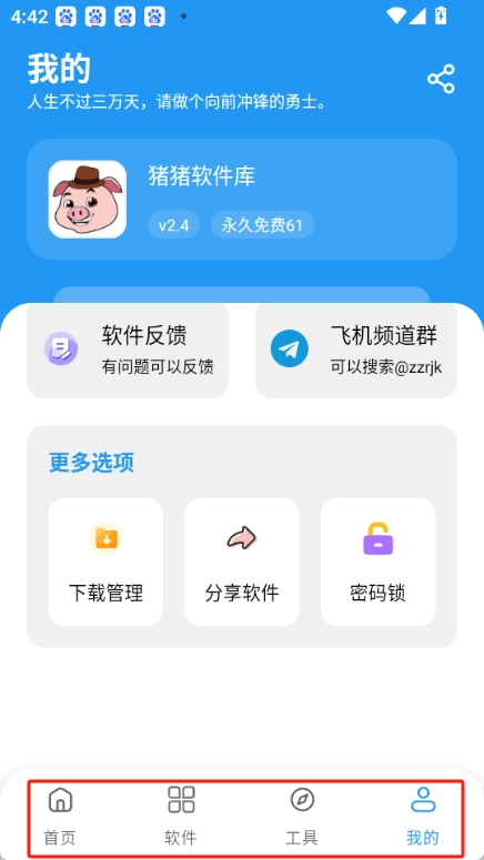 授权成功后,你就能看到首页、软件、工具和我的这四个板块了。