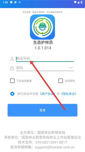 勾选同意按钮后,可点击上方输入框,依次填写电话号码与密码信息。