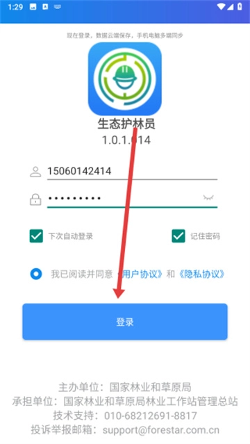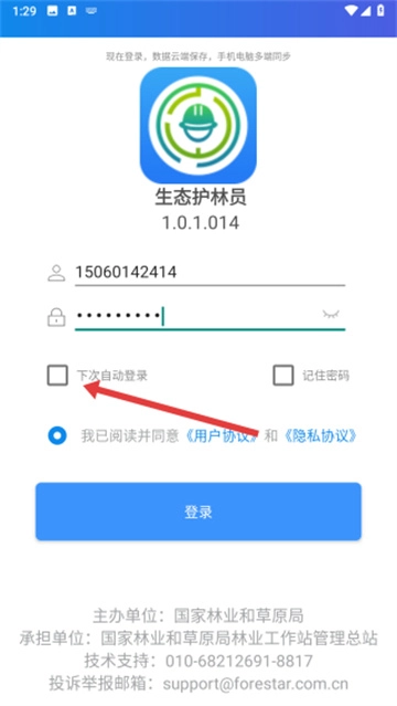 进入应用后,在登录之前需要先点击下方的“我已阅读并同意”按钮进行勾选。