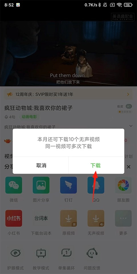 6、用户随便点击一个你感兴趣的视频,点击“我要配音”,就可以进行配音了哦