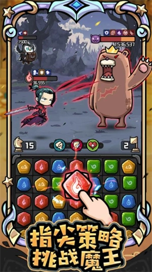 1、消除方块开始英雄战斗,享受游戏中的英雄冒险乐趣