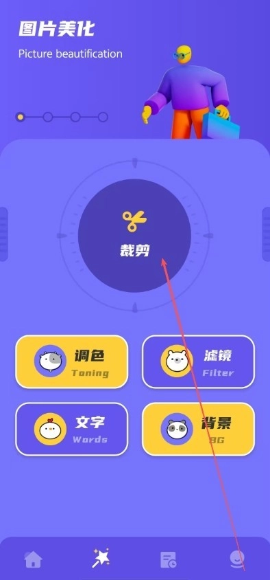 2、在图片美化页面,用户还能对图片进行裁剪、调色、添加滤镜、插入文字以及设置背景等操作。