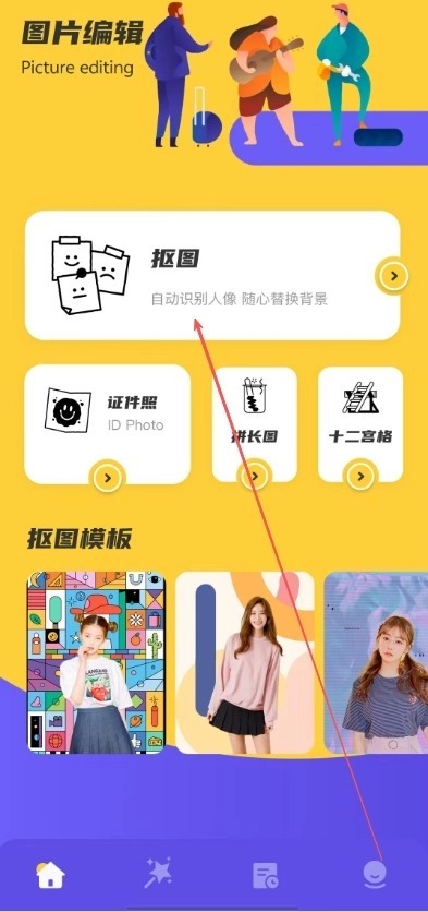 1、用户进入软件后,可直接在图片编辑页面体验并使用抠图、证件照制作、拼长图以及模板等功能