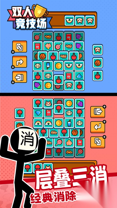 双人竞技场是一款主打本地双人对战的休闲益智游戏,它汇集了多种轻松有趣的对战玩法,专为朋友、情侣、家人面对面互动而打造。这款游戏包含多个经典小游戏,每个小游戏都节奏轻快、操作简易,十分适合在短时间内开启一场欢乐对战。其中部分小游戏还融入了趣味互动机制与协同元素,考验双方的默契和策略配合。游戏整体界面清新可爱,操作便捷,无论是儿童、学生还是成年人都能快速上手,在任何场合都能享受即时对战带来的乐趣。