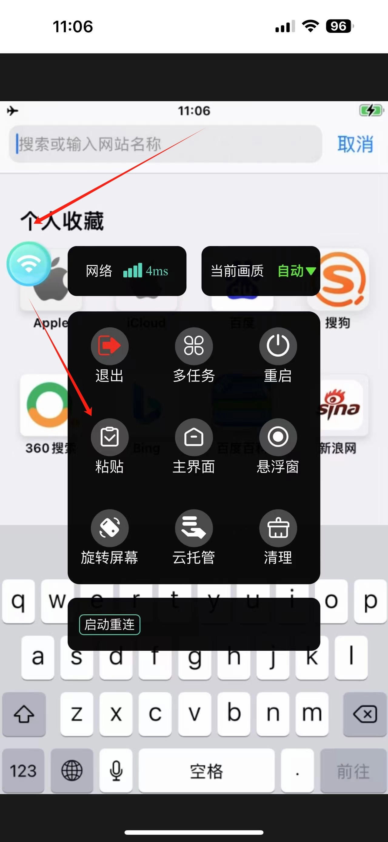 5、最后云手机内会出现粘贴的标志,点击即可。