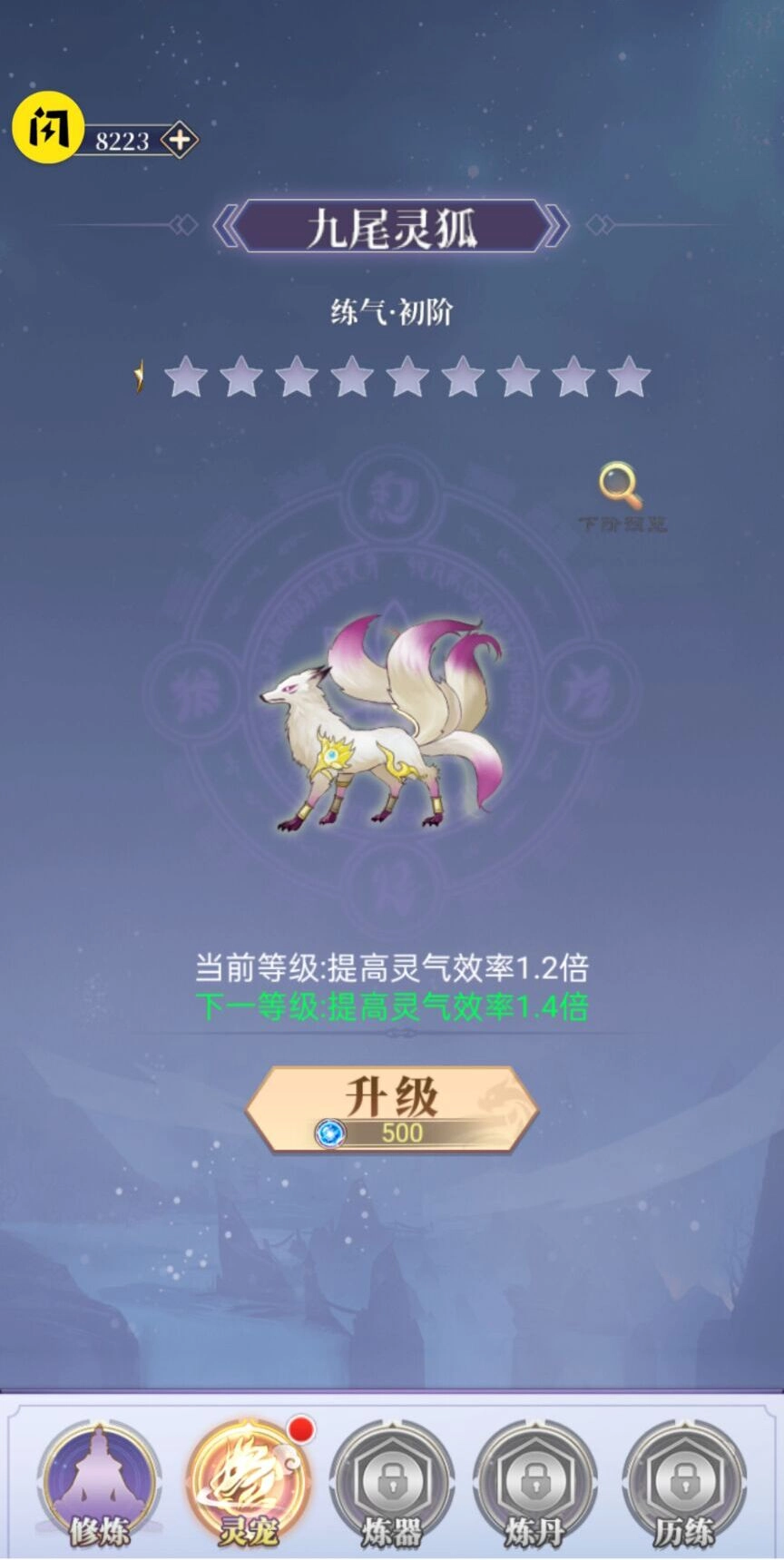 1、在这里你可以解锁灵宠,比如九尾妖狐等各种灵兽来帮助自己。