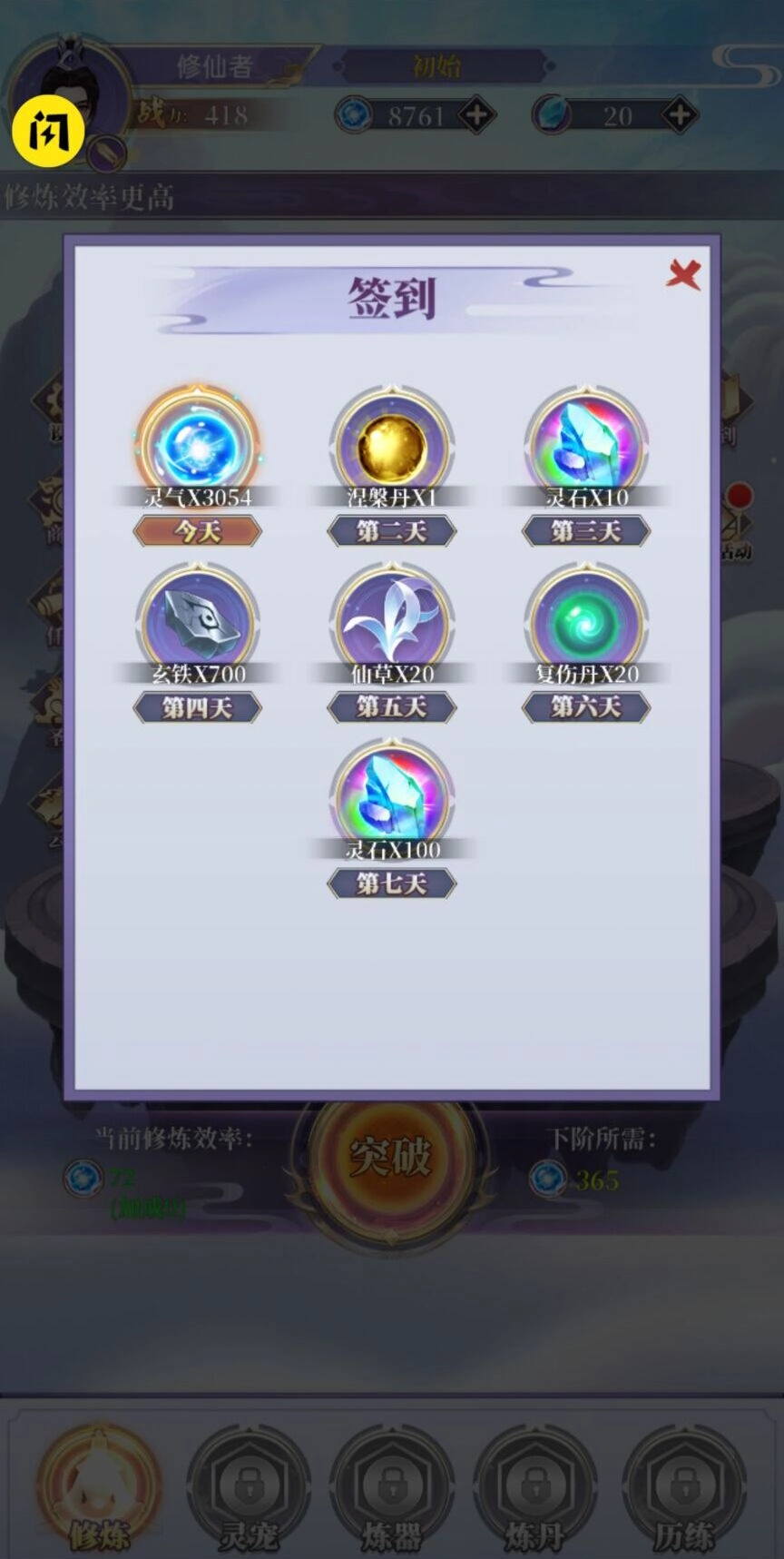 3、历练去战斗,可以去收集各种材料来修炼,提升炼器和炼丹的等级。