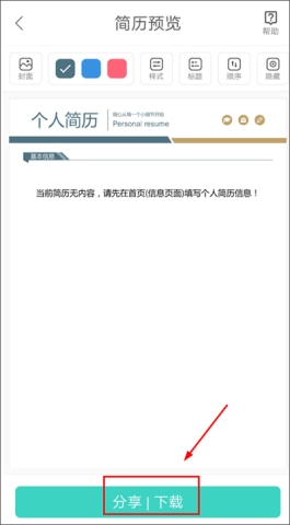 在“简历阅览”页面,点击底部的“分享|”按钮,就能轻松分享、或者保存到相册。