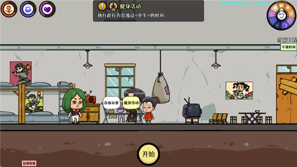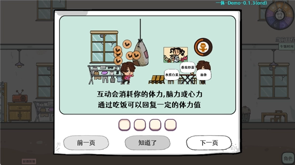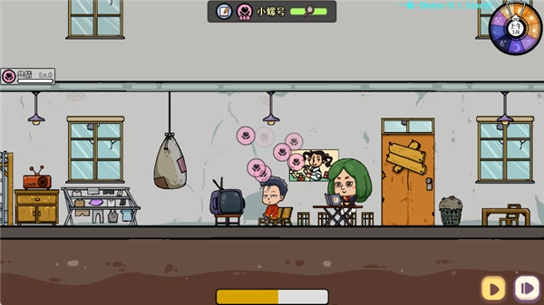 在场景里和物品互动、增强自身属性,都会耗费对应的体力、脑力或心力,同时让右上角的时间往前走一小格。