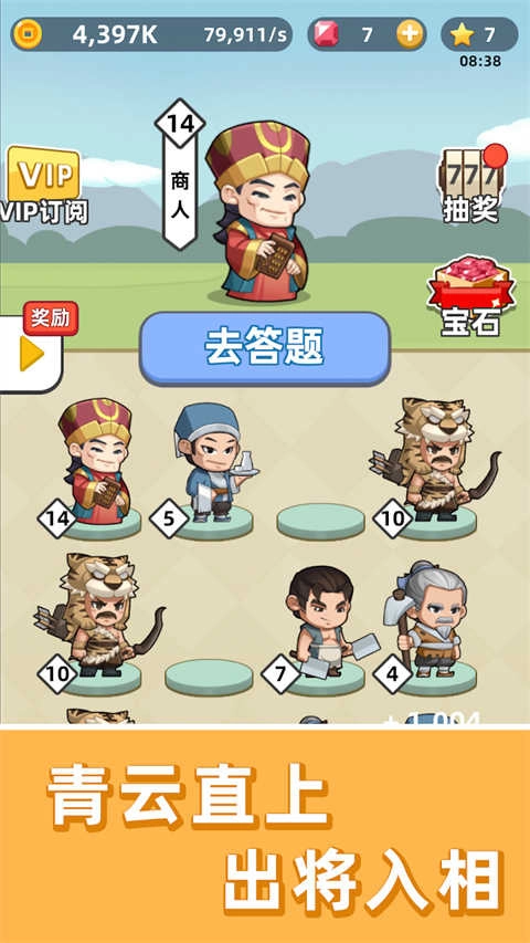 玩家在答题过程中,既能学习成语知识,还能获取人物卡片,通过合成这些卡片可以提升游戏主角色的等级。