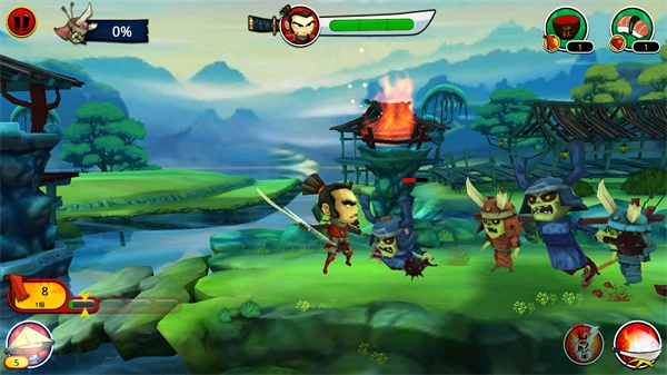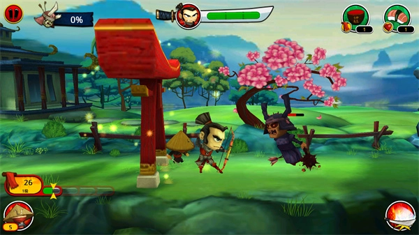 武士大战僵尸2中文版完美延续了前作的核心玩法,在此基础上新增了丰富的角色与道具。玩家可操控主角进入关卡展开挑战,在战斗过程中借助武器持续消灭僵尸;若能及时收集掉落的金币,便能用于购买道具和升级角色,进而顺利守卫村庄。