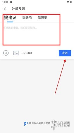 进入吐槽反馈界面后,您可以输入想要表达的吐槽或建议内容。输入完成后,点击【发送】按钮,您的反馈就会成功提交。